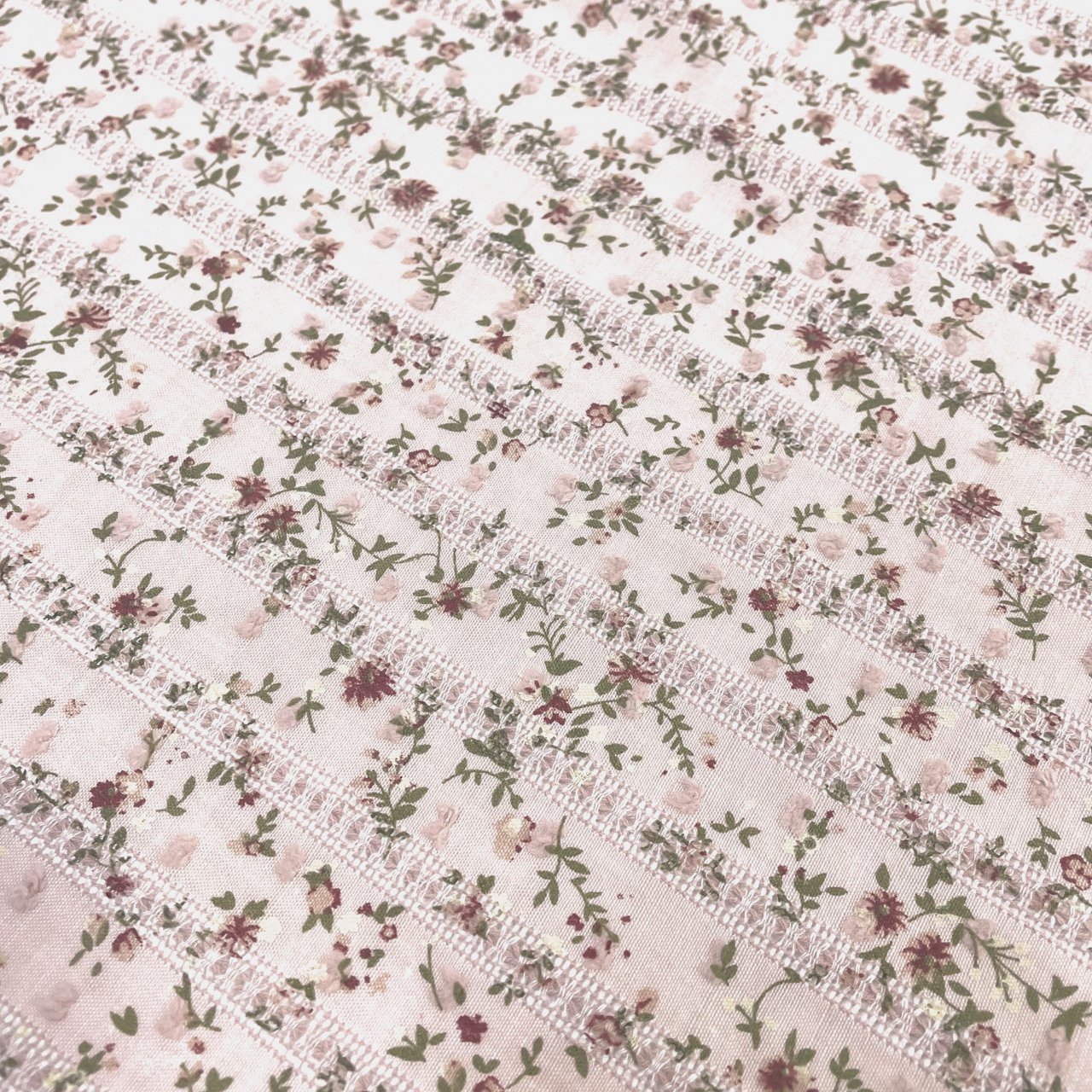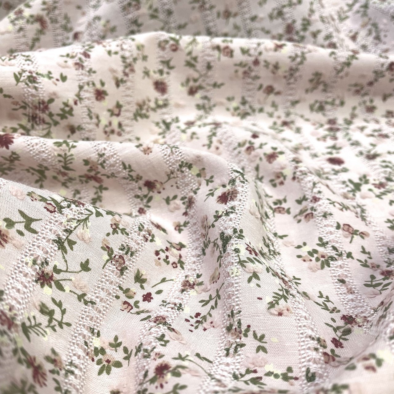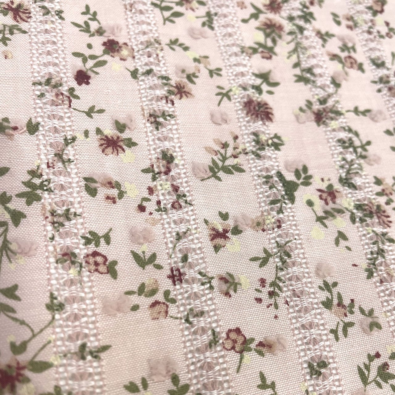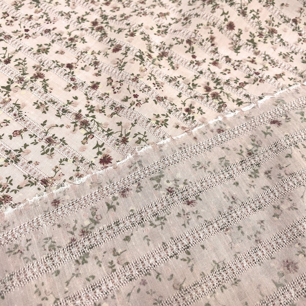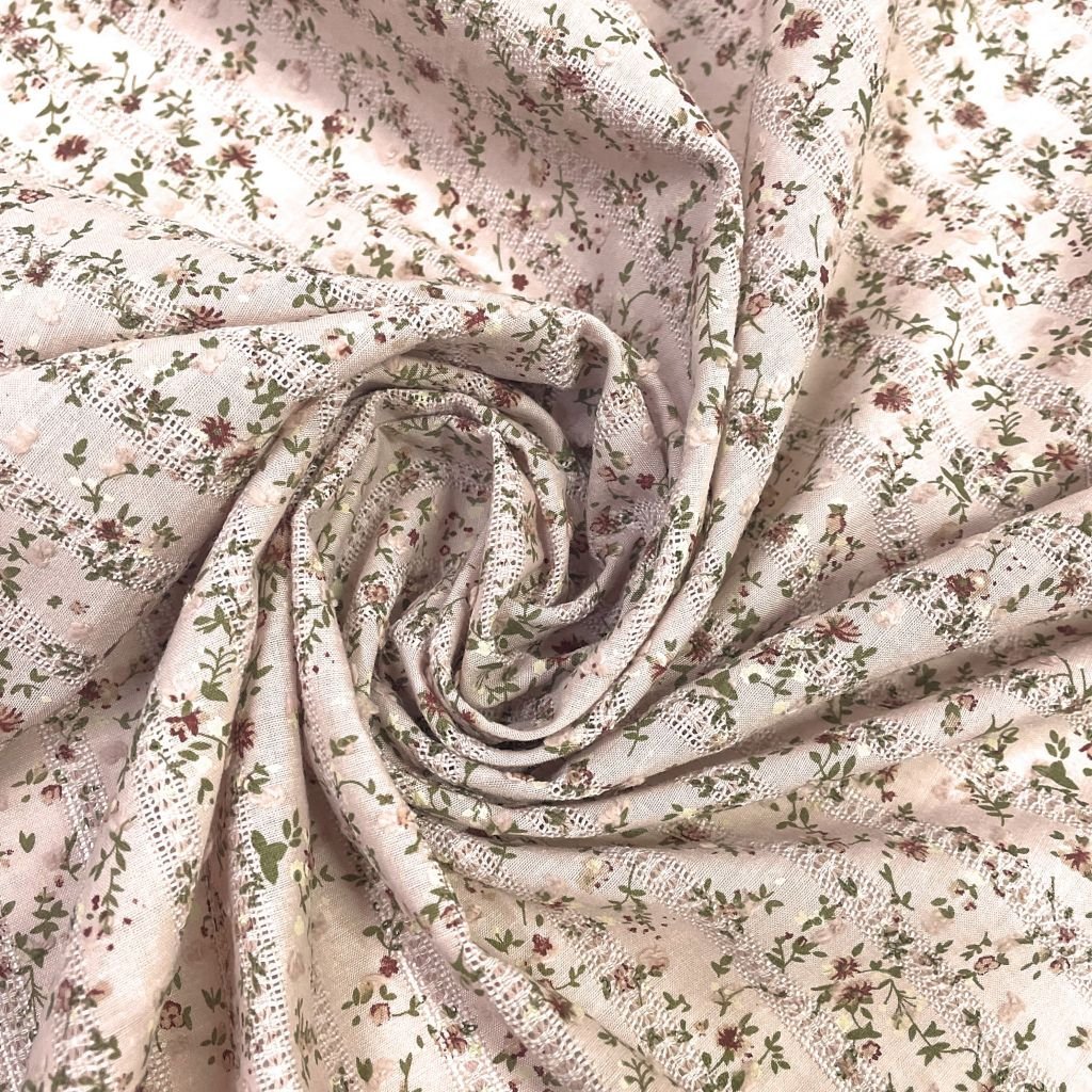 Тонкая хлопчатобумажная ткань . Хорошо впитывает влагу, комфортна при носке. Держит форму. Прекрасно подходит для пошива платьев, сорочек, одежды в романтичном стиле. Рисунок ткани позволит не только сшить изделие классической формы, но и поэкспериментировать с романтикой фасона. По длине полотна проходят полоски с имитацией вышивки в стиле ришелье.